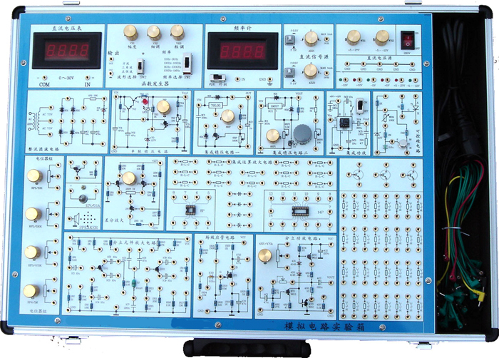 模擬電路實(shí)驗(yàn)箱是根據(jù)最新的《高等工業(yè)學(xué)校電子技術(shù)基礎(chǔ)》教學(xué)大綱中確定的教學(xué)實(shí)驗(yàn)要求為基礎(chǔ),汲取了眾多專業(yè)教師的教學(xué)經(jīng)驗(yàn),并綜合了眾多同類產(chǎn)品的優(yōu)點(diǎn)而設(shè)計(jì)的。它函蓋了《模擬電子技術(shù)基礎(chǔ)》課程全部實(shí)驗(yàn)內(nèi)容,既為初學(xué)者提供了驗(yàn)證性實(shí)驗(yàn)電路,又為課程設(shè)計(jì)提供了擴(kuò)展平臺。