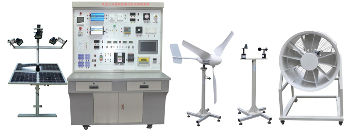 系統(tǒng)裝置由太陽能光伏電板、雙軸跟蹤控制模塊、蓄電池模塊、太陽能控制器模塊、太陽能逆變器模塊、模擬風(fēng)洞發(fā)電模塊、開關(guān)控制模塊、環(huán)境監(jiān)測模塊、上位機(jī)監(jiān)控模塊,儀表顯示部分,(各功能轉(zhuǎn)換接口模塊)等組成;各控制系統(tǒng)集成于風(fēng)能發(fā)電、光伏發(fā)電為一體的教學(xué)實(shí)訓(xùn)臺(tái);各系統(tǒng)通過連接電纜進(jìn)行連接,形成一套可完成風(fēng)力及光伏發(fā)電、同步并網(wǎng)、離網(wǎng)電源的實(shí)驗(yàn)及教學(xué)演示。幫助學(xué)生理解太陽能并網(wǎng)、離網(wǎng)及風(fēng)力發(fā)電系統(tǒng)的原理,從而起到學(xué)習(xí)工程實(shí)際應(yīng)用技能的作用。
