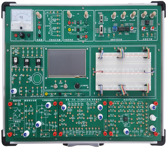 增強(qiáng)型電子線路綜合實(shí)驗(yàn)箱由全鋁木合金箱體、高性能線性電源和實(shí)驗(yàn)電路板等組成。其中實(shí)驗(yàn)電路既可以采用固定功能模塊方式,也可以自行搭建實(shí)驗(yàn)電路,電路原理和元器件符號清晰,實(shí)驗(yàn)用元器件全部焊裝在線路板的反面,而且有亞克力板保護(hù),安全可靠,不易損壞。本實(shí)驗(yàn)箱適用于本專院校所有電類和非電類專業(yè)《模擬電子技術(shù)》、《電子線路》等課程的實(shí)驗(yàn)教學(xué)。