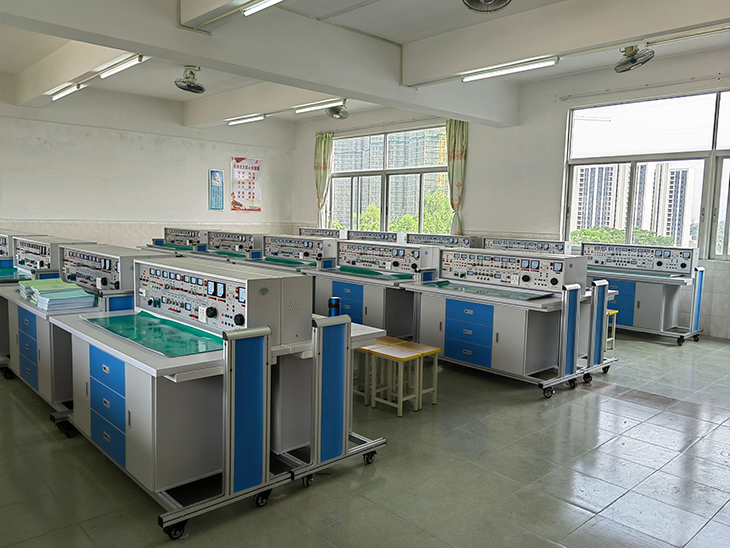 電氣裝配實(shí)訓(xùn)室設(shè)備、電氣自動(dòng)化實(shí)驗(yàn)實(shí)訓(xùn)室設(shè)備主要服務(wù)于電氣自動(dòng)化技術(shù)、機(jī)電一體化技術(shù)、機(jī)械制造自動(dòng)化、數(shù)控技術(shù)等專業(yè)的電類課程的實(shí)驗(yàn)實(shí)訓(xùn)任務(wù),為教師從事科研、教學(xué)研究服務(wù),并承擔(dān)著青年教師下電氣實(shí)驗(yàn)實(shí)訓(xùn)室鍛煉的任務(wù)。電氣實(shí)驗(yàn)實(shí)訓(xùn)室一貫秉承“嚴(yán)謹(jǐn)治學(xué)、勇于探索、大膽實(shí)踐、科學(xué)負(fù)責(zé)”的原則,堅(jiān)持培養(yǎng)學(xué)生獨(dú)立思考、獨(dú)立操作、獨(dú)立分析問(wèn)題的能力,培養(yǎng)運(yùn)用基本理論分析處理實(shí)際問(wèn)題的方法。電氣裝配實(shí)訓(xùn)室、電氣自動(dòng)化實(shí)訓(xùn)室的建設(shè),已逐步形成涵蓋多學(xué)科、多專業(yè)的實(shí)驗(yàn)實(shí)訓(xùn)教學(xué)平臺(tái),根據(jù)學(xué)科發(fā)展和人才培養(yǎng)的需求,建立起了一個(gè)合理分工、緊密銜接,由基礎(chǔ)到綜合的實(shí)驗(yàn)實(shí)訓(xùn)教學(xué)體系。電氣裝配實(shí)訓(xùn)室、電氣自動(dòng)化實(shí)訓(xùn)室分別為電工技術(shù)實(shí)驗(yàn)實(shí)訓(xùn)室、電子技術(shù)實(shí)驗(yàn)實(shí)訓(xùn)室、高級(jí)電工實(shí)訓(xùn)室、微機(jī)控制與仿真實(shí)訓(xùn)室、電氣控制綜合實(shí)訓(xùn)室、自動(dòng)生產(chǎn)線實(shí)訓(xùn)室、數(shù)控設(shè)備維修實(shí)訓(xùn)室、電子產(chǎn)品裝配實(shí)訓(xùn)室。