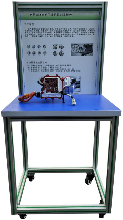 電動車壓縮機結構解剖實訓臺選用主流純電動車配套電動車壓縮機;通過解剖,展示現電動車壓縮機內部結構和控制原理。